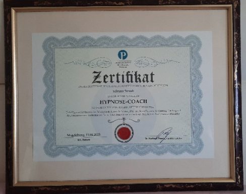 ausgebildete, zertifizierter Hypnosecoach und Absolventin des Deutschen Instituts für klinische Hypnose bei Dr. Norbert Preetz.